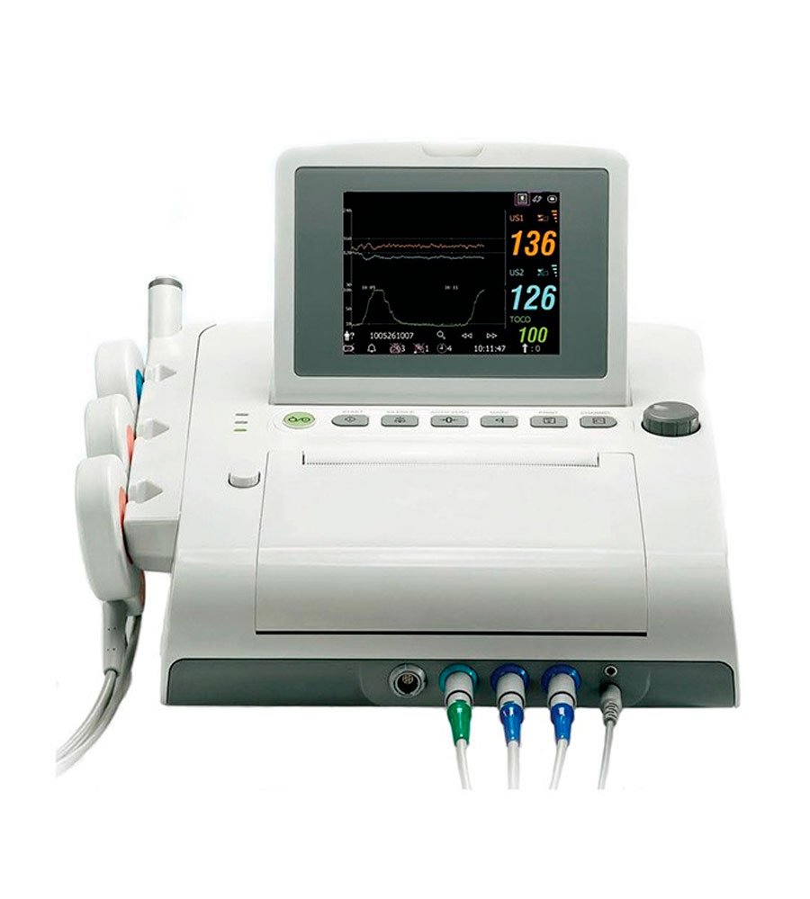 • Parámetros de medición: Frecuencia Cardiaca Fetal (FHR1, FHR2), Contracciones Uterinas (TOCO).